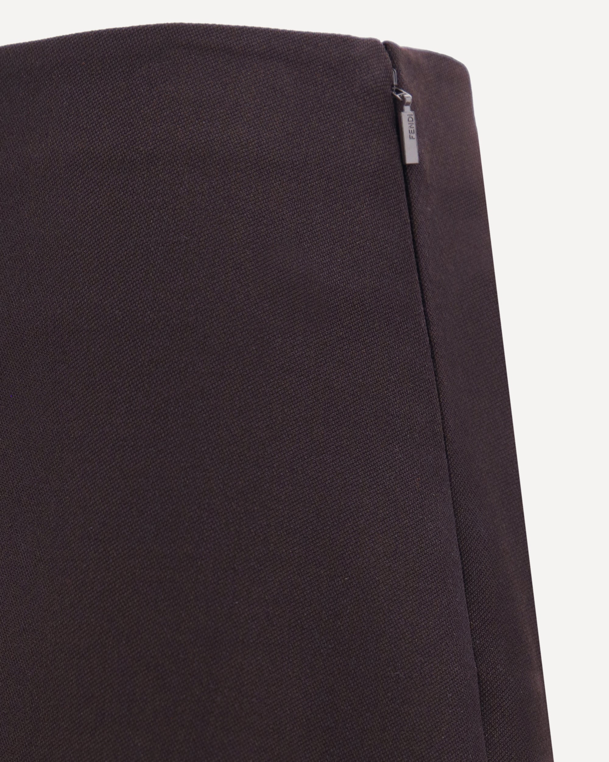 Wool Midi Skirt by Fendi, side zipper closure, four slits at back panel, monochrome pattern, regular fit.
